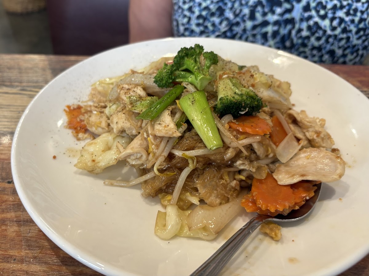 When it comes to entrees, the options are endless. For those who love a bit of heat, the Pad Thai is a crowd favorite. It’s made with stir-fried rice noodles, eggs, and a choice of chicken, shrimp, or tofu, all tossed in a sweet and savory sauce with crushed peanuts and fresh lime. The balance of flavors is spot on, and the dish is consistently well-prepared. Another standout is the Massaman curry-rich, creamy, and full of flavor, it’s the perfect comfort food for a chilly night.